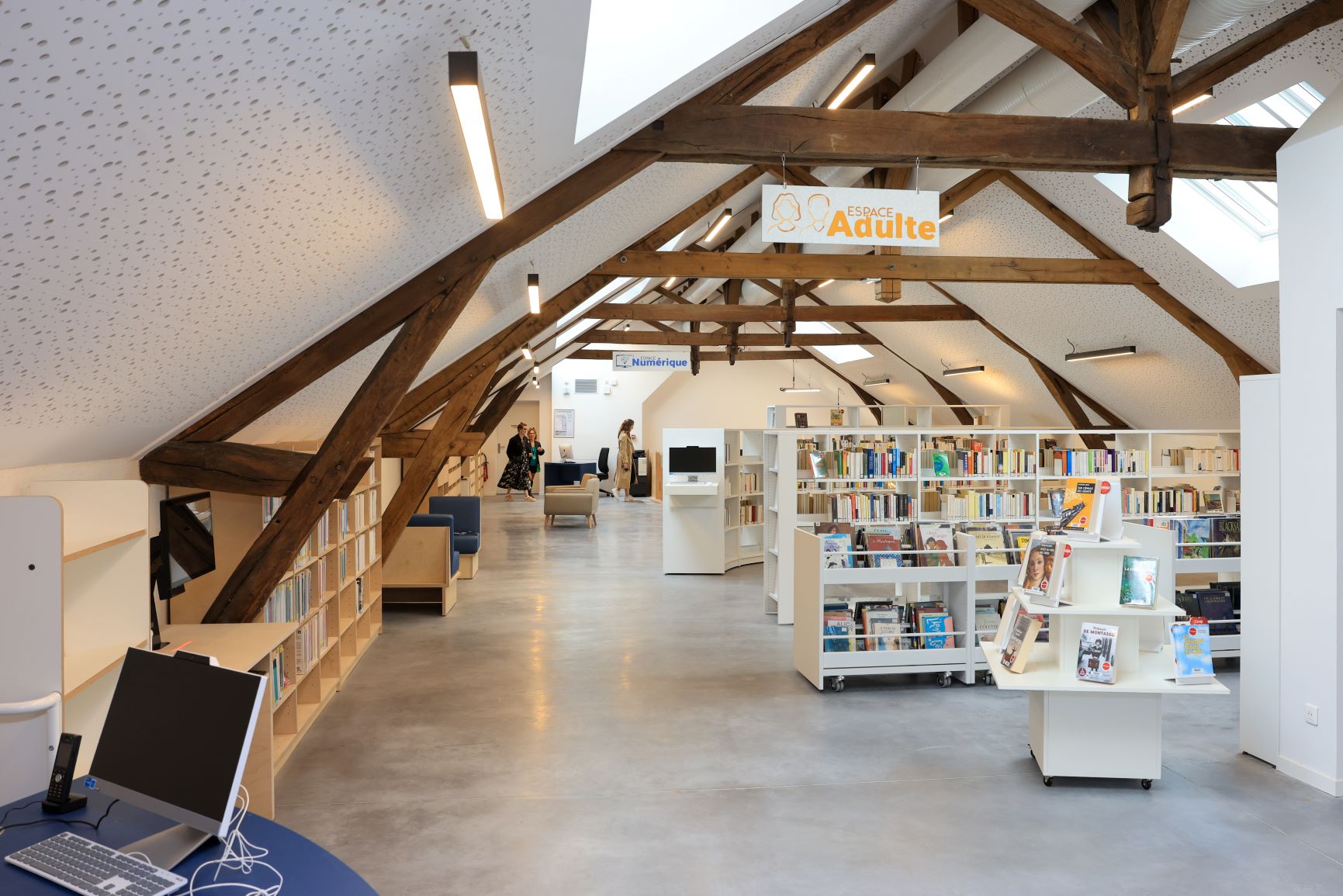 La nouvelle médiathèque incarne l’ambition portée par la municipalité de Mer de remplacer l’ancienne médiathèque devenue trop étroite par un équipement plus moderne et adapté aux pratiques culturelles d’aujourd’hui, au sein du réseau de lecture publique départemental. Avec une surface de 786 m², la nouvelle médiathèque, implantée sur le site de la Brèche, offre des espaces plus accueillants et fonctionnels, accessibles aux personnes à mobilité réduite.