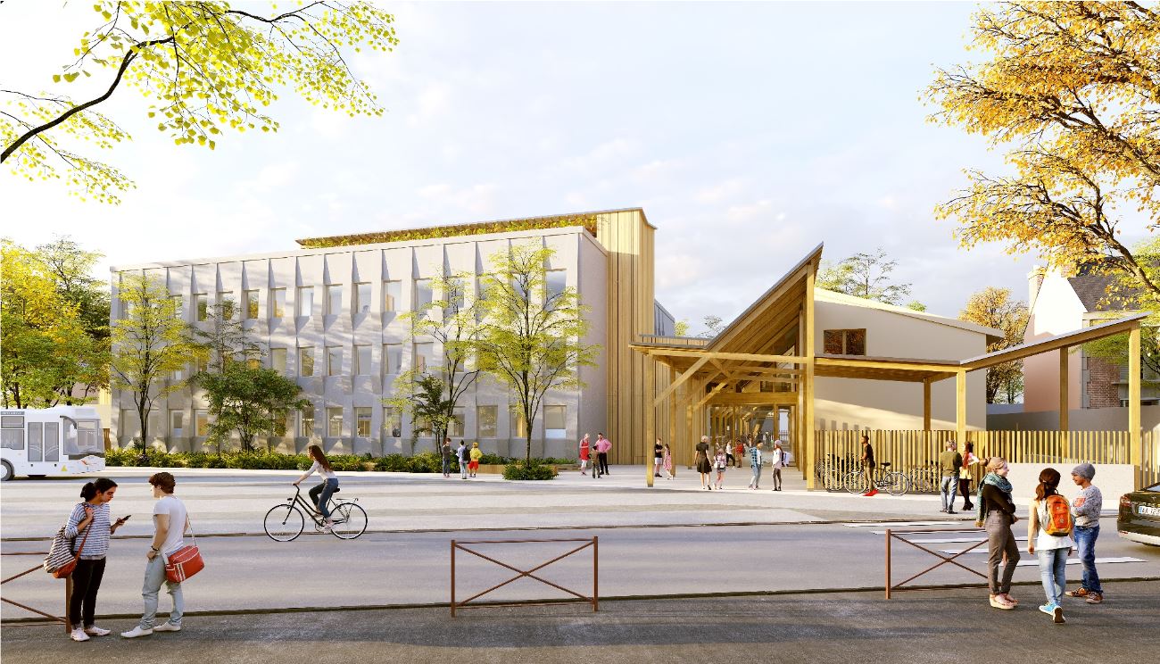 - Cour largement végétalisée pour favoriser la régulation thermique et le bien-être des élèves.