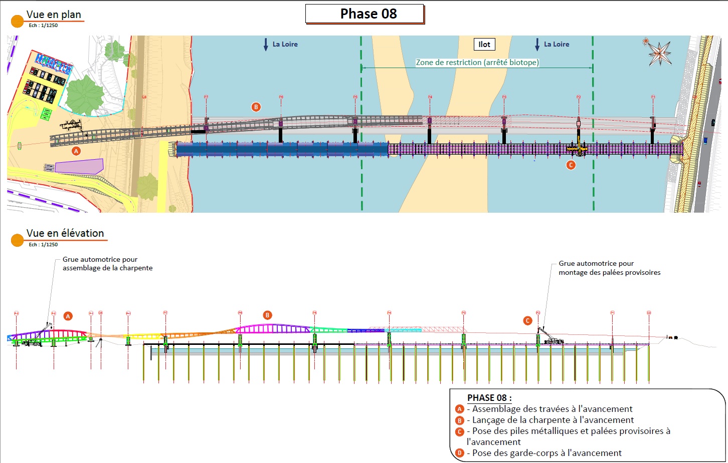 Cinq phases de lançage seront réalisées au fur et à mesure de l’assemblage des différentes travées qui composent la future passerelle.