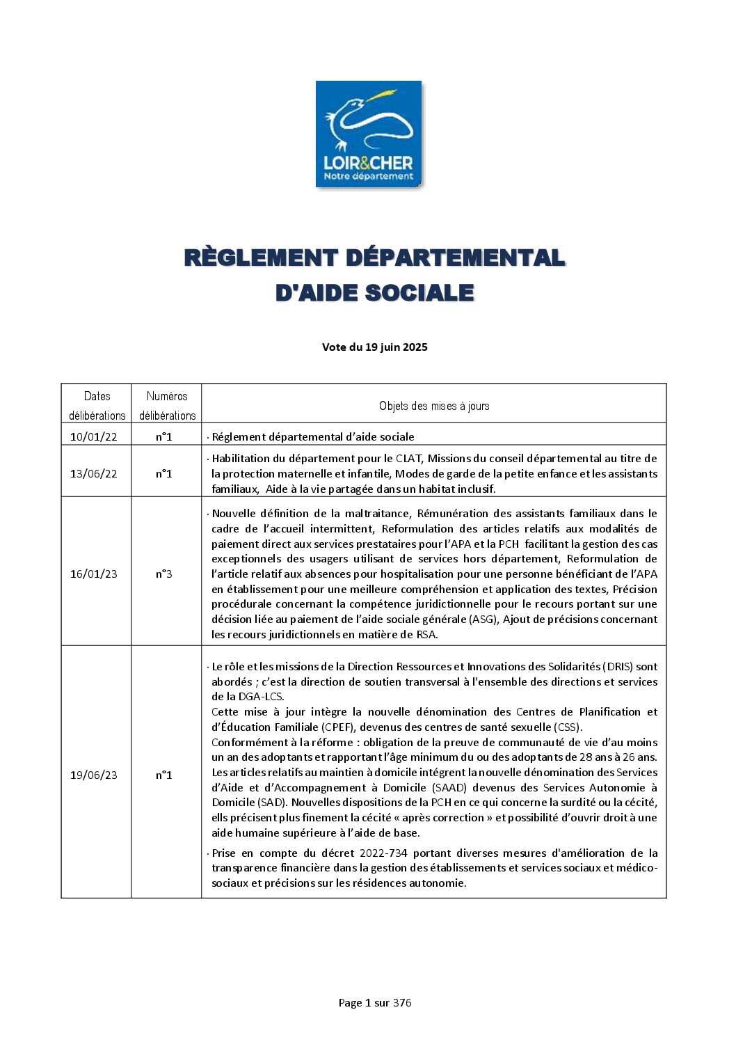 RDAS – Règlement départemental d’aide sociale