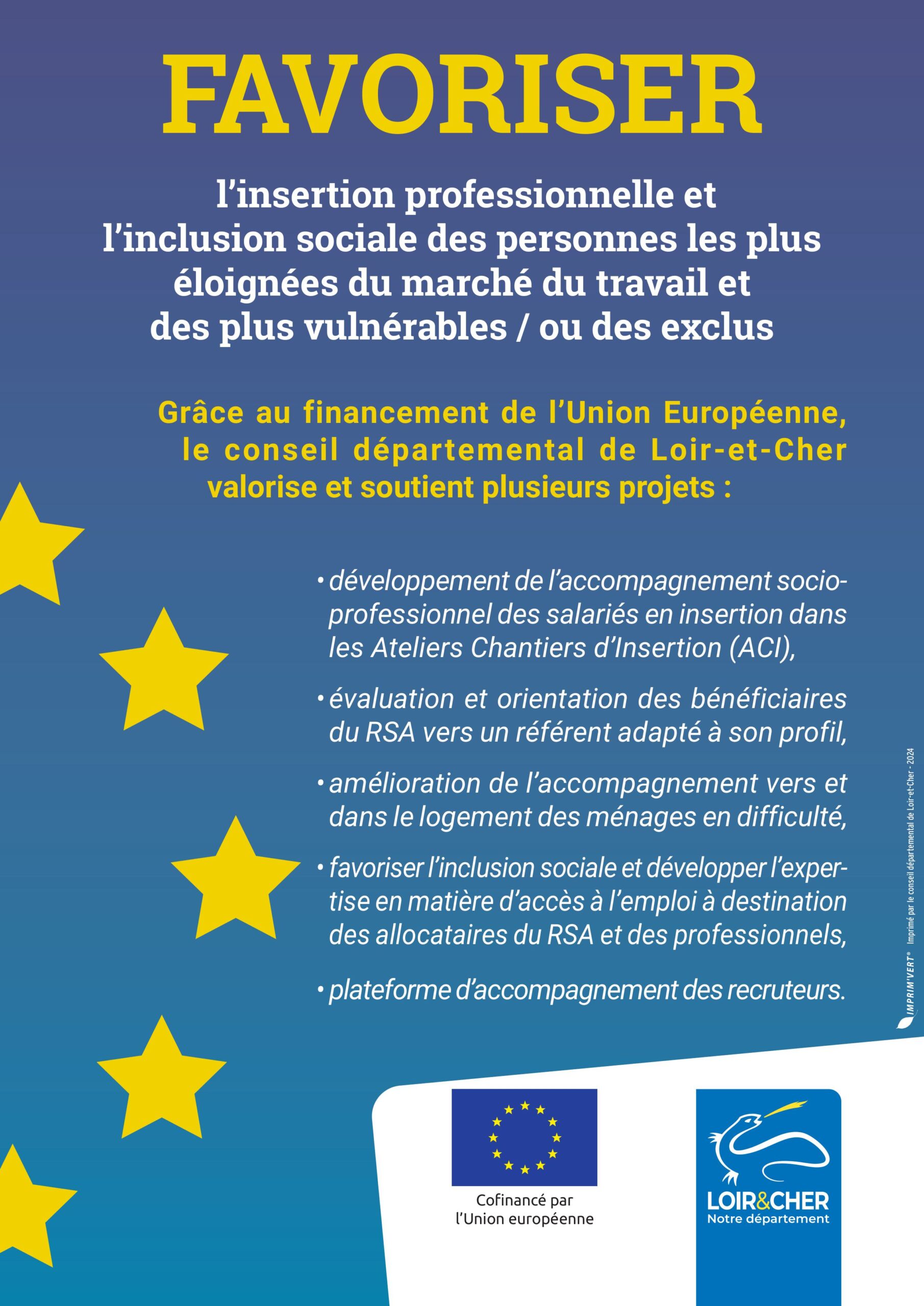 Les structures loir-et-chériennes désireuses de solliciter un financement FSE+ pour une opération répondant aux critères des appels à projets départementaux peuvent nous contacter.